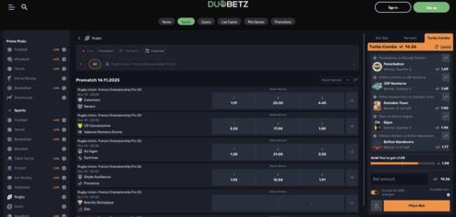 Duobetz consistently offers some of the highest odds we’ve found on rugby matches. When Wales played Ireland in March 2024, their odds were 4-5% better than competitors on several markets.